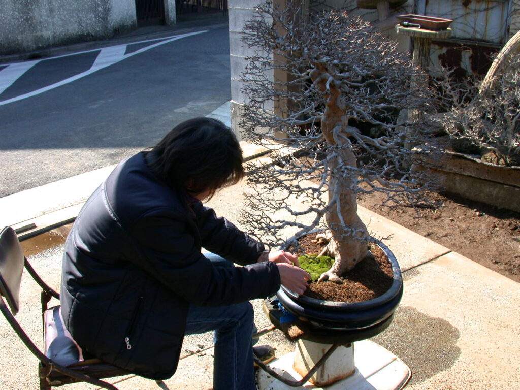 Preparation for Display S-35: Finalize how each tree will be displayed, including display concept and accessories. Confirm any necessary display equipment is ready.  Place moss on the tree now.  This gives the moss time to grow in and leaves time to touch up in final preparation. Use moss of different species and size to create interest.